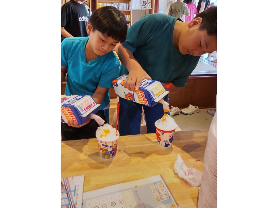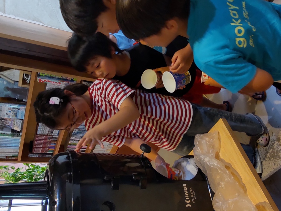 この日は、Book∞Cafeすけろくに子どもたちが集まり、色とりどりのシロップをかけたかき氷を楽しみました。