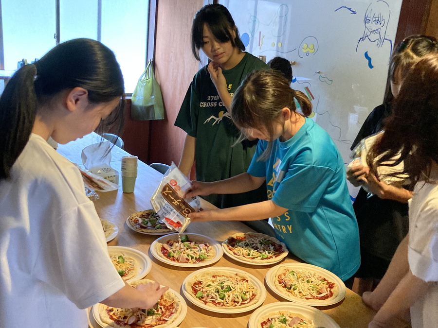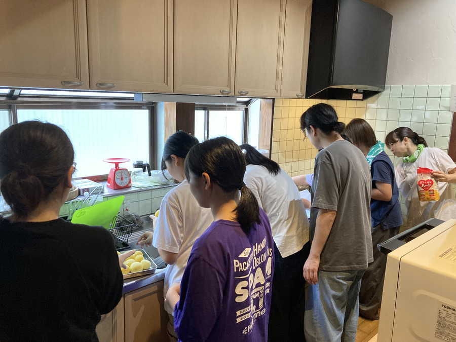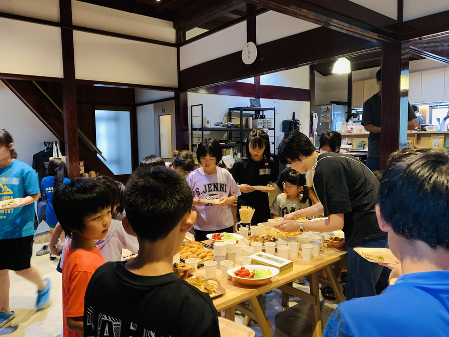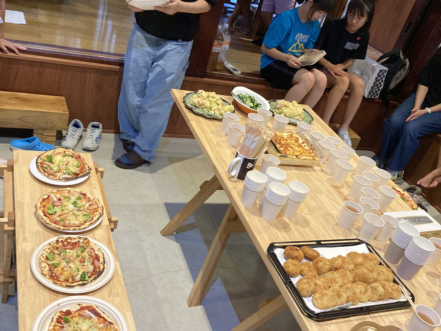 テーブルにはピザ、フライドポテト、ポテトサラダ、コロッケなど、じゃがいもを使った料理がずらりと並びました。約40人の保育園児〜高校生・保護者・ボランティアが集まり、笑顔いっぱいでワイワイと食事を楽しむことができました。