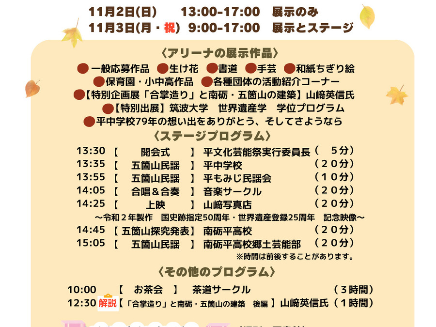 \\ 11月2日・3日の2日間にわたり、令和7年度 平文化芸能祭を開催しました! //